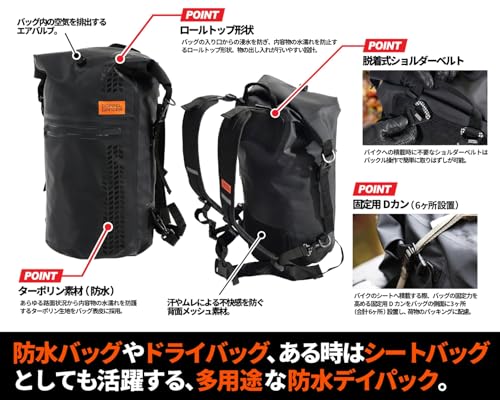 バイク乗車時はシートバッグとして、現地に着いたらデイバッグとして使える2way。