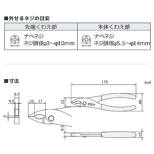 普通のペンチは横溝のためねじ頭を掴んでも滑って回せません。