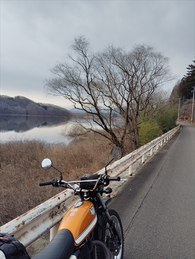 ダム湖を渡る長い橋を越えると、いくつかのアップダウンのあるワィンディングを通る。道の両側が湿っている。凍結はしていないように見える。でも、油断は禁物だ。たぶん、朝方や気温の低い日は凍結するだろう。雪が降らなくても、要注意だ。